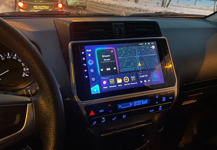 Защитное стекло 2,5D имеет слегка скругленные грани. Эта особенность делает его практически незаметным в районе краев экрана магнитолы, где он ограничен рамками корпуса.
