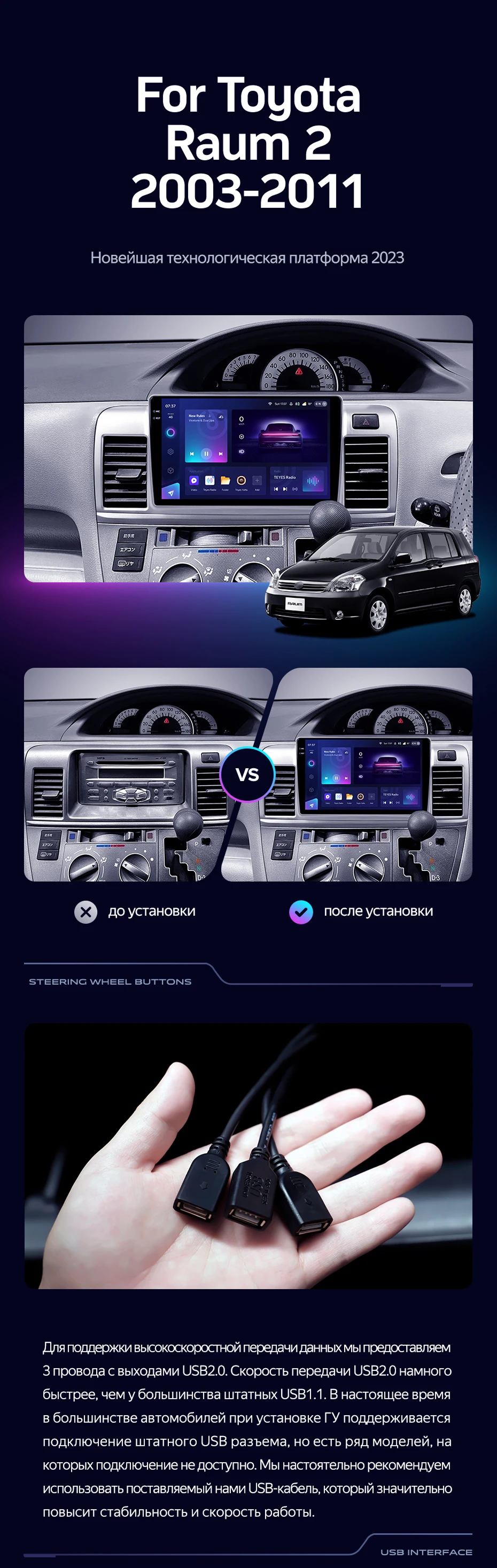 Штатная магнитола Teyes CC3L WiFi 2/32 Toyota Raum 2 (2003-2011) - купить всего за 18 800 руб. в интернет-магазине в Новосибирске Teyes.com.ru. ✓ Самый лучший выбор мультимедиа ✓ Лучшая замена штатному ГУ ✓ Тел. +7 (800) 775-31-74