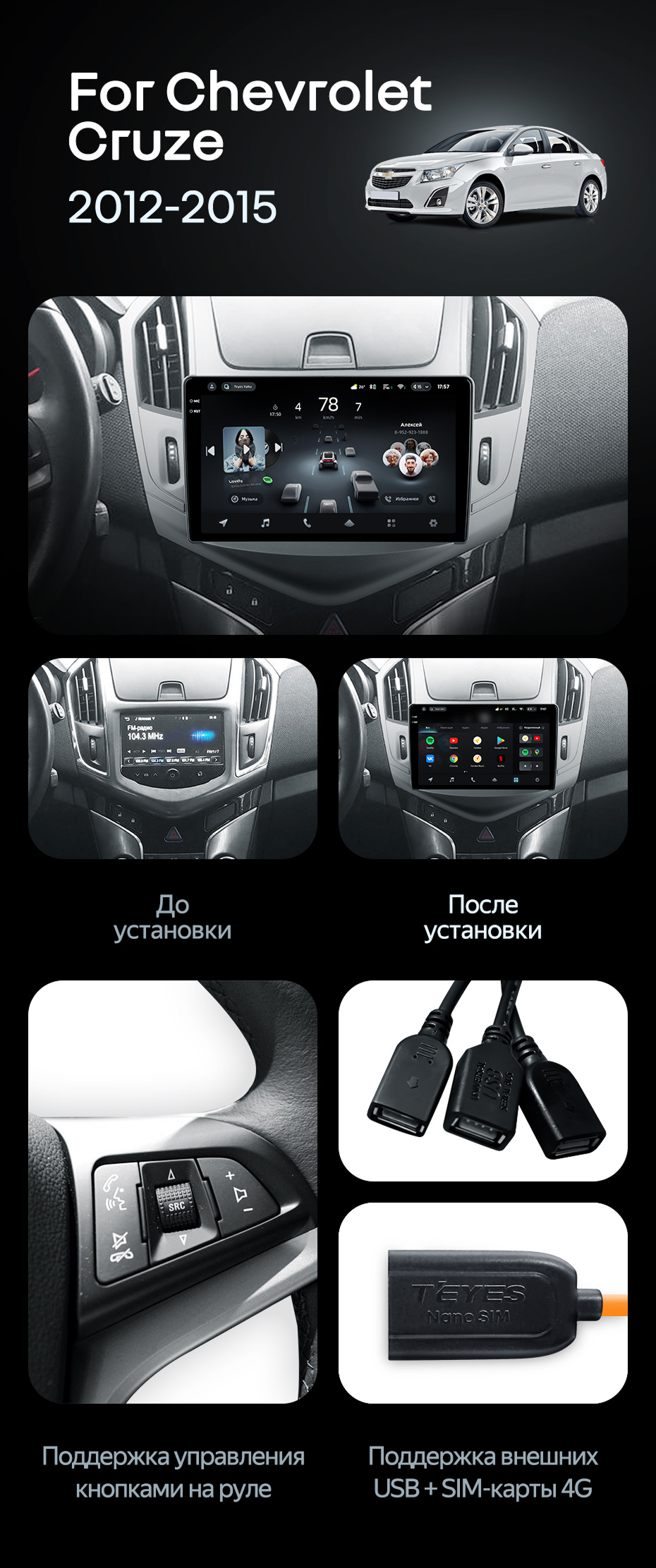 Штатная магнитола Teyes CC4 Pro 12/256 Chevrolet Cruze J300 J308 (2012-2015) - купить всего за 74 760 руб. в интернет-магазине в Новосибирске Teyes.com.ru. ✓ Самый лучший выбор мультимедиа ✓ Лучшая замена штатному ГУ ✓ Тел. +7 (800) 775-31-74