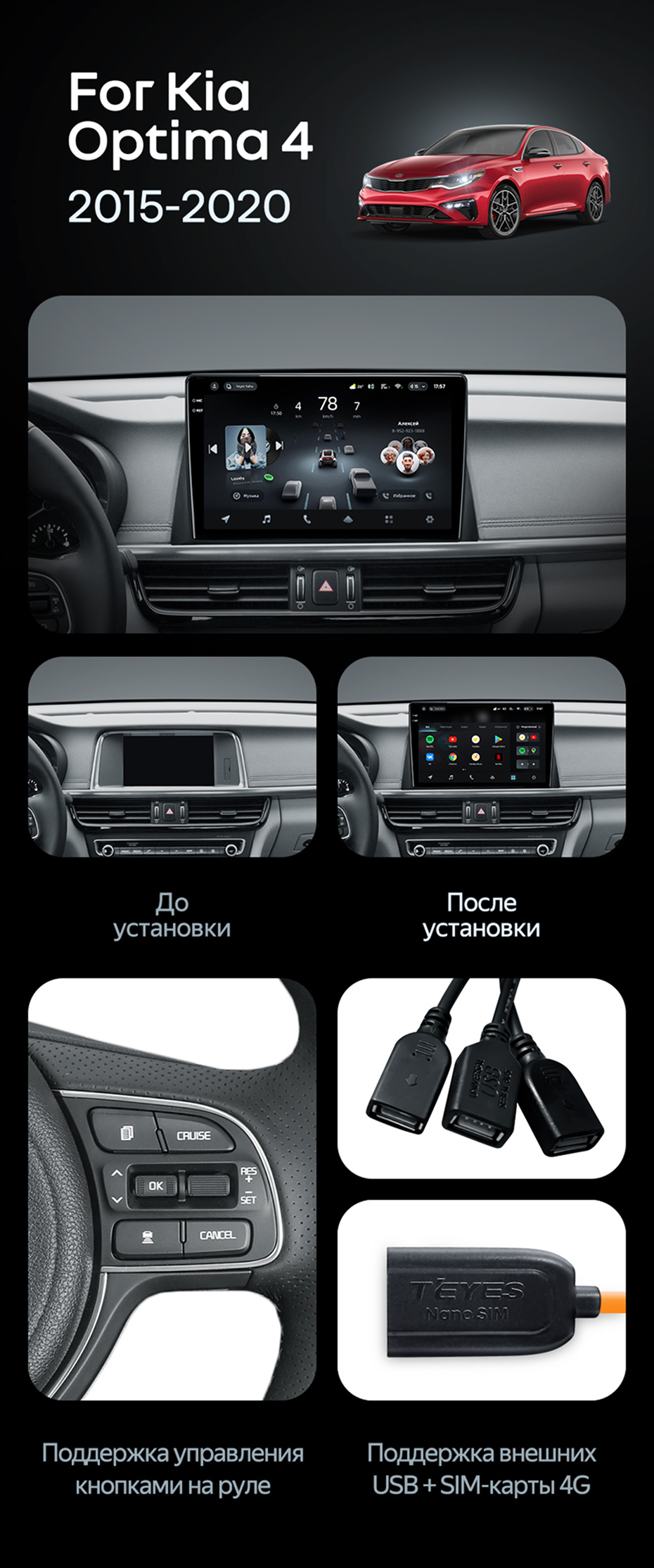 Штатная магнитола Teyes CC4 Pro 12/256 Kia Optima 4 JF (2015-2020) Тип-A - купить всего за 66 150 руб. в интернет-магазине в Новосибирске Teyes.com.ru. ✓ Самый лучший выбор мультимедиа ✓ Лучшая замена штатному ГУ ✓ Тел. +7 (800) 775-31-74
