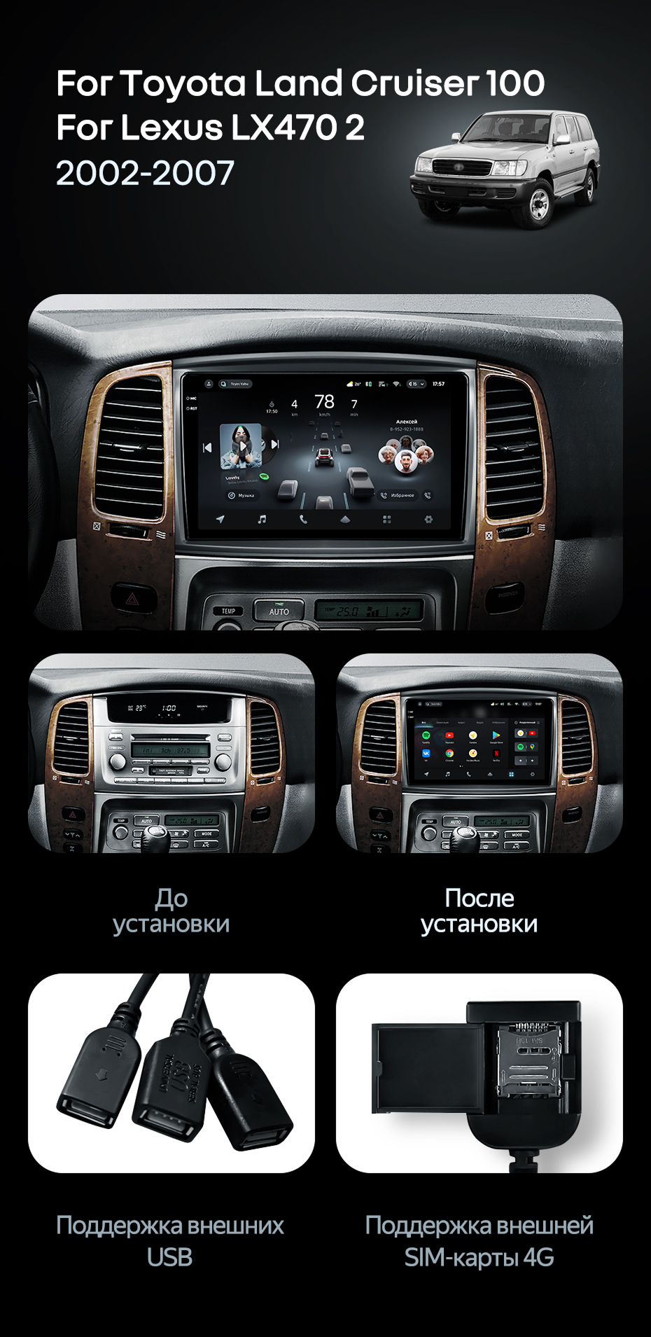 Штатная магнитола Teyes CC4 Pro 12/256 Toyota Land Cruiser LC 100 (2002-2007) Тип-C - купить всего за 69 100 руб. в интернет-магазине в Новосибирске Teyes.com.ru. ✓ Самый лучший выбор мультимедиа ✓ Лучшая замена штатному ГУ ✓ Тел. +7 (800) 775-31-74
