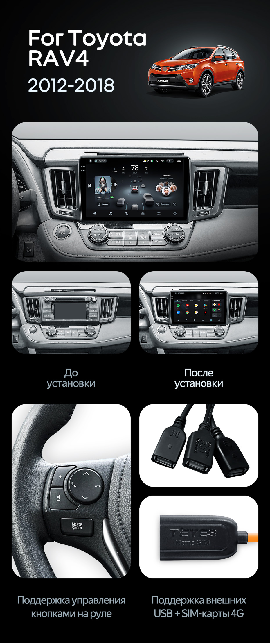 Штатная магнитола Teyes CC4 Pro 12/256 Toyota RAV4 (2012-2018) - купить всего за 73 390 руб. в интернет-магазине в Новосибирске Teyes.com.ru. ✓ Самый лучший выбор мультимедиа ✓ Лучшая замена штатному ГУ ✓ Тел. +7 (800) 775-31-74