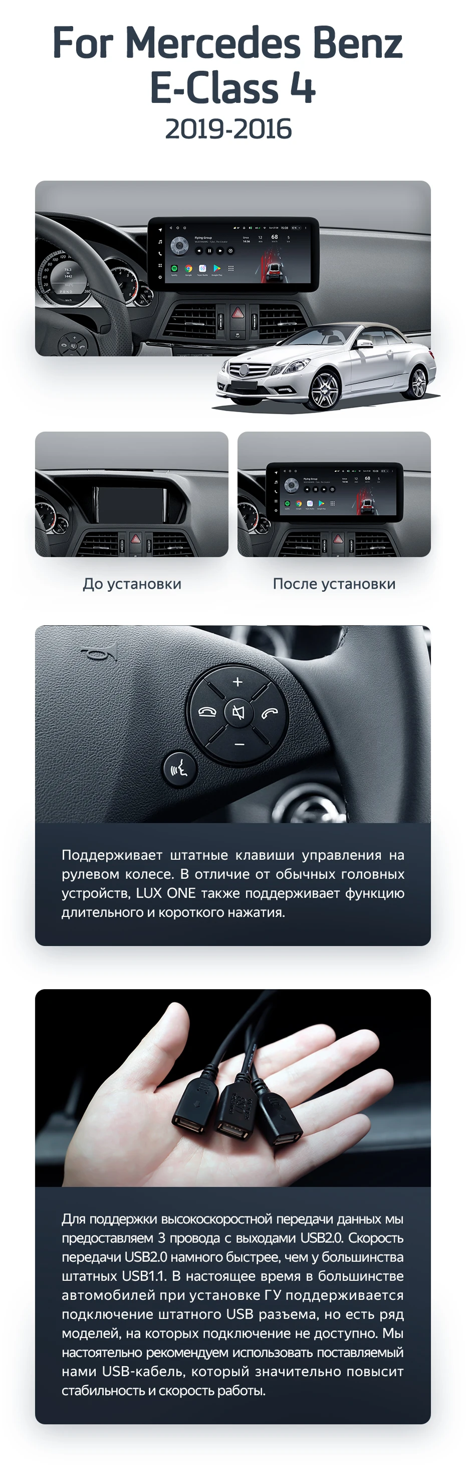 Готовый установочный комплект для магнитолы Mercedes-Benz E-Class 4 W212 S207 A207 S212 C207 (NTG 4.0) (TY) (2009-2016) F2 12,3 дюйма в штатное место, включает переходную рамку и проводку.